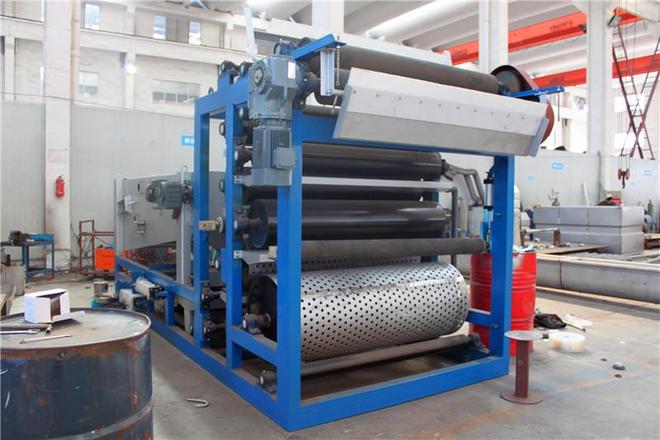 由直径由大到小顺序排列的辊筒组成。污泥被上下滤带夹持,经过压榨辊时,在滤带张力作用下形成由小到大的压力梯度,使污泥在脱水过程中所受的压榨力不断增高,水分逐渐脱除 。